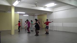 Kick-Step-Lock-Step, Step Lock Step, Heel Grind ¼ R, Side-Cross, Point-Touch, Kick-Bal-Cross