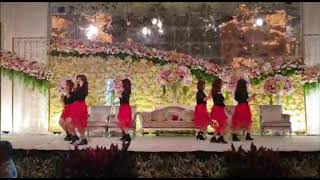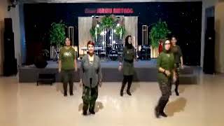 12Cross R over L (Place R hand behind R ear), Step L back (Place L hand behind L ear)