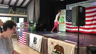 3-4LF rock forward hitching R up, recover onto RF flicking LF cross R