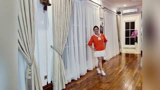 5 – 8Twist both heels to L side (5), twist both toes to L side (6), twist both heels to L side (7), clap (8) 9:00