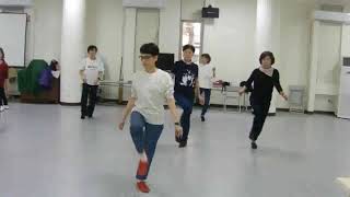 7-87) Big step R to right dragging L; 8) Step L across R