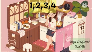 5678RF 1/4 Turn R(12:00) Step forward, Body roll