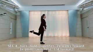 Back, Hold, Together, 2x Walks Forward, 3x Point (Switches), ¼ Forward