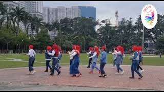 1 - 2Swivel both heels out to L side (1), swivel heels back again (2) ... weight on R 6:00