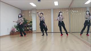 7-8Cross left slightly over right, Point right to right side