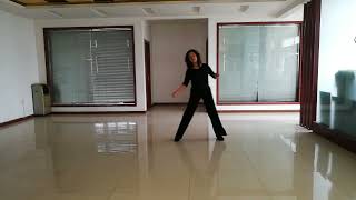 a7Turning ¼ left step L forward (5 o'clock), turning ½ left step back on R hooking left foot across R knee (11 o'clock)