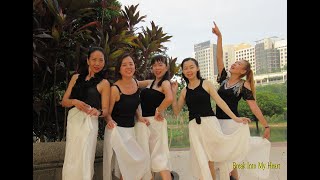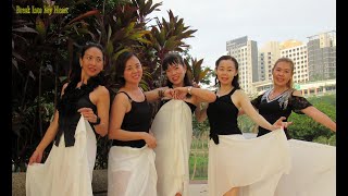 1-2&Make a 1/4 turn L and step LF to L side (rotate body and extra 1/4 turn to L and push R hand forward coming from the centre of your chest, as if offering your heart) (now facing 7:30), make a 1/2 turn R and step forward on RF (puling hand back in), make a 1/2 turn R and step back on LF