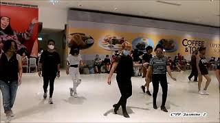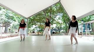 1-2Step back on LF and sweep RF from front to back, Rock back on RF