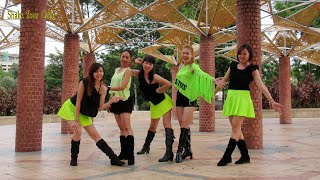 [1-8] Hip Rolls w/ Bumps (x2), Side-Together, Shuffle Forward