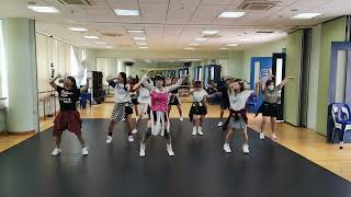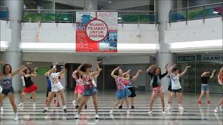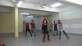 [1-8] Towards Left Diagonal : Kick Forward R, Flick Back R (With Arm Movements), Kick Forward R, Flick Back R (With Arm Movements) (2× Syncopated), repeat everything