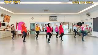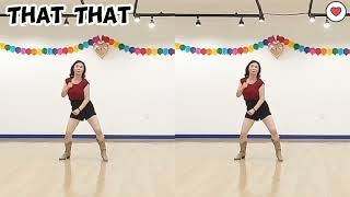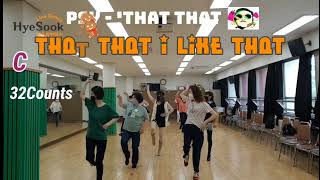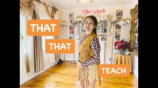 7-8Straighten knees and lean to right and put right thumb up twice (7-8) (weight ends on LF)