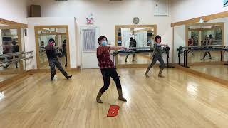 [1-8] Out/ Out, Stomp R (2×) With Arm Movements, Out/ Out, Stomp L (2×) With Arm Movements
