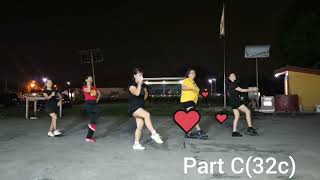 6-7-8RF drag together over 2 counts as you stretch your arm forward from right to left (6,7,8) (weight remains on LF)
