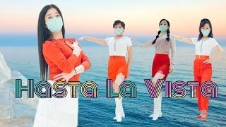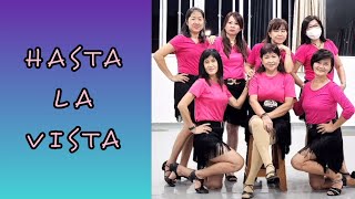 & 5 6Step forward and out on R (&), step L out to L side (5), walk back on R (6)