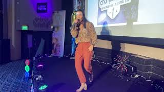5,6Turn ¼ L stepping L fwd (3:00), turn ½ L stepping R back (9:00)