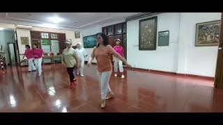 Cross over, back wards, triple left, modified forward v step, coaster back wards.