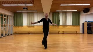 Lockstep forward, ½ turn right, samba whisks or jump and hold.