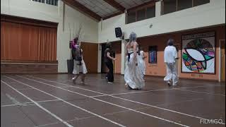 Step Back, Touch, Step Forward, Brush, Step, Hold, ½ Turn Left, Hold.