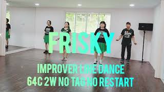 Frisky er en energisk 64/2 improver dans, hvor der både er plads til flow og lidt ekstra udfordring. Med mange tællinger bliver det en rejse gennem trin, drej og vægtskift – perfekt til dem, der elsker variation og vil have pulsen lidt op.