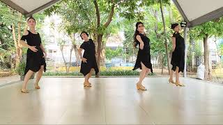 a2Step R back with R knee slightly bent, Touch L toe forward (both knees are now slightly bent)