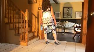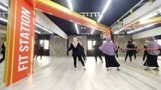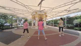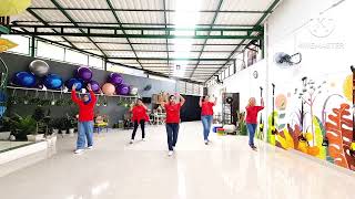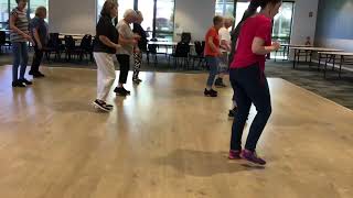 5, 6, 7, 8Step RF out to R side, Step LF behind R, Step RF out to R side, Touch LF next to R
