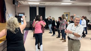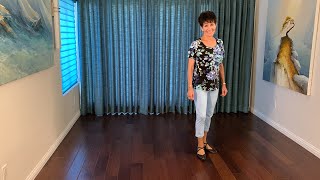 5, 6, 7, 8Step LF out to L side, Step RF behind L, Step LF out to L side, Scuff RF