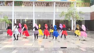 (Styling: Make the steps look hoppy so your heels are in the air and don’t make contact with the ground and your kicks come from a bent knee)