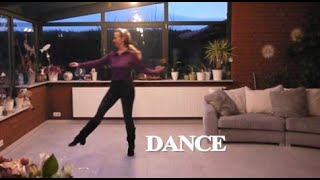 7&8LF cross behind RF, RF step side, 1/8 turn L & LF step forward 10:30
