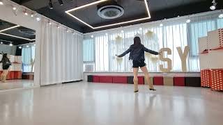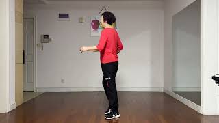 3-4Swing RF in the air while making ½ turn R on LF, RF step forward 9:00