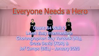 Everyone Needs A Hero (29) er en 64/2 easy intermediate linedance, dramatisk og kraftfuld, men stadig dansbar for improvere, der vil udfordre sig selv. De mange trin og musikalske variationer gør dansen til en imponerende gulvoplevelse.