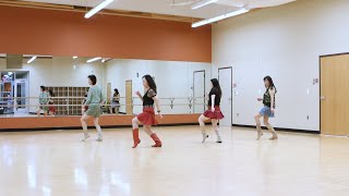 8& (1)Cross R behind L (8), step L to L side (&), (stomp R to R side to begin the dance again)(1) 6:00