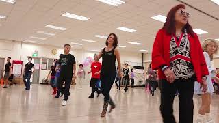 RIGHT SAILOR STEP, LEFT SAILOR STEP, RIGHT BEHIND/UNWIND FULL TURN, LEFT SIDE ROCK/RECOVER1&2Cross right behind left, step left to side, step right to side3&4Cross left behind right, step right to side, step left to side5-6Cross right behind left, unwind a full turn (weight to right)7-8Rock left to side, recover onto rightOption: bend knees and go down low for the unwind, then straighten up for the rockLEFT SAILOR STEP, RIGHT SAILOR STEP, LEFT BEHIND/UNWIND FULL TURN, RIGHT SIDE ROCK/RECOVER9&10Cross left behind right, step right to side, step left to side11&12Cross right behind left, step left to side, step right to side13-14Cross left behind right, unwind a full turn (weight to left)15-16Rock right to side, recover onto leftOption: bend knees and go down low for the unwind, then straighten up for the rockRIGHT CHASSE, LEFT CROSS ROCK/RECOVER, LEFT CHASSE, RIGHT CROSS ROCK/RECOVER17&18Step right to side, step left together, step right to side19-20Cross/rock left over right, recover onto right21&22Step left to side, step right together, step left to side23-24Cross/rock right over left, recover onto leftRIGHT CHASSE (¼-RIGHT), LEFT STEP/½ PIVOT, FULL TURN FORWARD (LEFT, RIGHT), LEFT SHUFFLE25&26Step right to side, step left together, turn ¼ right and step right forward27-28Step left forward, turn ½ right (weight to right)29-30Step left forward, turn ½ right and step right back31&32Turn ½ right and step left forward, step right together, step left forwardRIGHT MAMBO, LEFT BACK MAMBO, RIGHT STEP/½ PIVOT, RIGHT STOMP, LEFT STOMP33&34Rock right forward, recover onto left, step right back35&36Rock left back, recover onto right, step left forward37-38Step right forward, turn ½ left (weight to left)39Stomp right forward&(Every wall except the first) clap40Stomp left forward&(Every wall except the first) clapRIGHT MAMBO, LEFT BACK MAMBO, RIGHT STEP/½ PIVOT, RIGHT STOMP, LEFT STOMP41&42Rock right forward, recover onto left, step right back43&44Rock left back, recover onto right, step left forward45-46Step right forward, turn ½ left (weight to left)47Stomp right forward&(Every wall except the first) clap48Stomp left forward&(Every wall except the first) clapLEFT WEAVE WITH SYNCOPATED RIGHT HEEL TOUCH, RIGHT RECOVER49-51Cross right over left, step left to side, cross right behind leftAngling body 45 degrees to the right&52Step left together, touch right heel forward&Step right togetherRIGHT WEAVE WITH SYNCOPATED LEFT HEEL TOUCH, LEFT RECOVER53-55Cross left over right, step right to side, cross left behind rightAngling body 45 degrees to the left&56Step right together, touch left heel forward&Step left togetherJAZZ BOX (½-RIGHT), LEFT CHASSE, RIGHT STOMP/KICK57-58Cross right over left, step left back59-60Turn ¼ right and step right to side, turn ¼ right and stomp/touch left together61&62Step left to side, step right together, step left to side63-64Stomp right together, kick right diagonally forwardClap hands on the &64 counts on every wall except the firstREPEAT