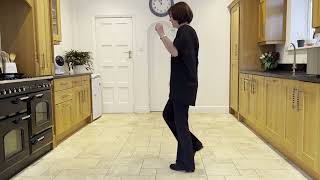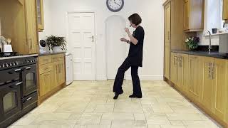 7 – 8Cross Right over Left. Flick Left foot back and slightly out to Left side.