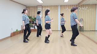 5 – 8Step L fwd (5), turn ¼ R onto R (6), cross L over R (7), clap hands (8) 9:00
