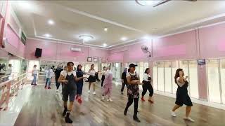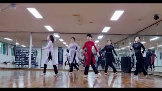 5-6Step right forward sweeping left from back to front, step left forward sweeping right from back to front
