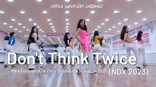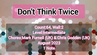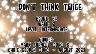 Don’t Think Twice er en sofistikeret 64/2 intermediate-dans, hvor Mark Furnell (UK) og Chris Godden (UK) har skabt et moderne og glidende udtryk, der følger Rita Oras pulserende poprytme med elegance og styrke. Koreografien balancerer mellem flydende bevægelser og præcise markeringer, og den udnytter musikkens dynamiske opbygning til fulde. Dansen har et eksklusivt, næsten urbant feel – teknisk krævende, men med en intuitiv musikalitet, der gør den yderst tilfredsstillende for erfarne dansere.