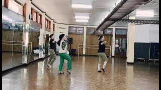 8&aStep R forward dropping arms, step L forward, step R to R (1:30)
