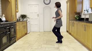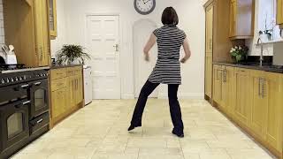 RF cross over LF, LF left, ¼ turn right, coaster step, rock forward LF, rock forward RF.