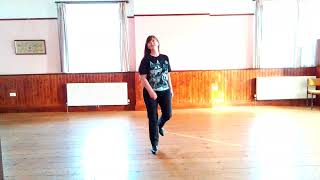 1, 2, 3&4 –touch left toe to right instep, touch left heel to right instep, step forward left diagonal, lock the right behind left, step forward left diagonal