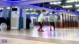 3&4Step RF behind LF, Step LF to left, Cross RF over LF (12:00)