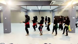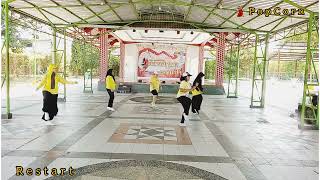 start the dance again. When the music cuts out, you hold, and when the bump bump bump happens, you finish the dance. To help with timing, you can use the following counts: 5&6&7 WAIT