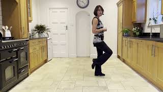 KICK RIGHT, CROSS BEHIND, ¼ LEFT, VINE RIGHT, POINT1-2Kick right foot diagonally forward, cross right behind left (12:00)3-4Make ¼ turn left stepping forward on left, step right to right side (9:00)5-6Cross left behind right, step right to right side7-8Cross left over right, point right to right side½ MONTEREY RIGHT, POINT LEFT, KICKING LEFT JAZZ, KICKING RIGHT JAZZ1-2Make ½ Monterey turn to right, point left to left side (3:00)3-4Kick left to left diagonal, cross left over right5-6Step back on right, step left to left side7-8Kick right to right diagonal, cross right over left (weight ending on right)BACK, SIDE, CROSS, HOLD, VINE RIGHT1-2Step back on left, step right to right side3-4Cross left over right, hold5-6Step right to right side, cross left behind right7-8Step right to right side, cross left over rightCONTINUE VINE, CROSS POINTS LEFT, RIGHT, LEFT1-2Step right to right side, cross left behind right3-4Step right to right side, cross point left over right5-6Step left to left side, cross point right over left7-8Step right to right side, cross point left over rightSIDE ROCK, RECOVER, CROSS, HOLD, SIDE ROCK, RECOVER WITH ¼ LEFT, WALK. HOLD1-2Step left to left side rocking left, recover onto right3-4Cross left over right, hold5-6Step right to right side rocking right, recover onto left making ¼ turn left7-8Walk forward on right, hold (12:00)FULL TRIPLE RIGHT, RIGHT BRUSH, RIGHT TOE STRUT, LEFT TOE STRUT1-2-3Make triple full turn right (left, right, left) (12:00)4Toe brush right foot forward5-6Step right toe forward, drop right heel and place weight on it7-8Step left toe forward, drop left heel and place weight on itRIGHT ROCKING CHAIR, RIGHT HEEL GRIND, BACK, TOUCH1-2Rock forward onto right, recover onto left3-4Rock back onto right, recover onto left5-6Rock forward on right into a right heel grind (moving toes left to right), recover onto left7-8Step back on right, touch left in front of rightSTEP, KICK, ¼ RIGHT, SIDE TOUCH, SIDE ROCK, RECOVER, CROSS, HOLD1-2Step forward on left, kick forward on right3-4Make ¼ turn right stepping right to right side, touch left next to right (3:00)5-6Rock step left to left side, recover onto right7-8Cross left over right, hold (3:00)REPEAT