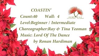 WALK RIGHT, LEFT, KICK RIGHT, COASTER, KICK BALL CHANGE1-2Step right forward, step left forward3-4Kick right forward, step right back5&6Step left back, step right together, step left forward7&8Kick right forward, step right together, step left in place9-16Repeat 1-8IRISH HEEL/TOE TOUCHES (TWICE, RIGHT THEN LEFT)Place hands on hips during next 16 counts (as per chorus line in 'Lord of the Dance')17&18Touch right heel forward, step right together, touch left toe together19&20Touch left heel forward, step left together, touch right toe together21-24Repeat 17-20RIGHT FORWARD, SIDE, TRIPLE (RIGHT THEN LEFT)25-26Touch right heel forward, touch right heel to side27&28Triple in place right, left, right29-30Touch left heel forward, touch left heel to side31&32Triple in place left, right, leftRIGHT STEP TO RIGHT, SLIDE, TURN ¼ SHUFFLE, STEP, PIVOT, SHUFFLE(Remove hands from hips now)33-34Step right to side, slide/step left together (clap)35&36Shuffle side turning ¼ right and step right, left, right37-38Step left forward, turn ½ right (weight to right)39&40Shuffle forward left, right, leftREPEATThe biggest problem with this dance is fitting the music! The recommended track increases tempo, somewhat erratically. Start the dance at time: 1:06:50
