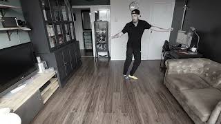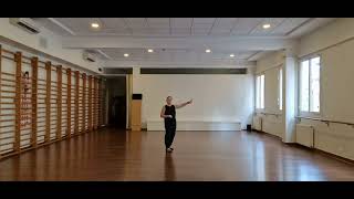 Option: On these counts in the 3rd and final tag, you can choose to do the same as tag 1 and 2 or, for fun, rather than doing the knee pop/arm movements, do a cross unwind full turn like this: