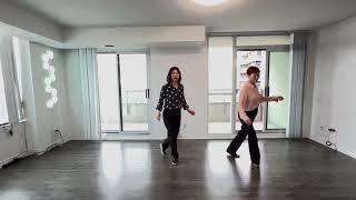 NC Basic R, 1/2 hinge turn R, NC Basic R, 1/2 hinge turn R, 1/8 turn R walk to diagonal