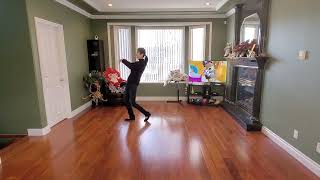 5,6,7-85) Step R behind L, 6) Turn 1/4 left stepping L forward [9:00], 7) Step R forward, 8) Hold