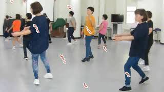 1 2 &Step R long step to R side dragging L in to R (1), step L slightly behind R (2), cross R over L (&) ***RESTART Wall 3