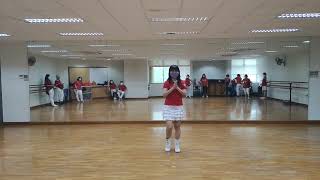 WALK FORWARD X 3 / SIDE TOE TOUCH-CLICK / WALK BACK X 3 / SIDE TOE TOUCH-CLICK (WITH HEAD TURN AND FINGER CLICKS)1-2Step forward on right, step forward on left3-4Step forward on right, touch left toes to left side turning head to left and clicking both fingers at shoulder height left5-6Step back on left, step back on right7-8Step back on left, touch right toes to right side turning head to right and clicking both fingers at shoulder height rightFULL TURN RIGHT / TOUCH WITH CLAP / FULL TURN LEFT / TOUCH WITH CLAP1-4Make a full turn to right stepping on right-left-right, touch left next to right clapping hands5-8Make a full turn to left stepping on left-right-left, touch right next to left clapping handsKICK TWICE / ¼ TURN-TOUCH / KICK-TRIPLE ½ TURN LEFT-KICK1-2Kick right foot forward twice3-4Step right ¼ turn right, touch left next to right5Kick left foot forward6&7Triple ½ turn in place on left-right-left8Kick right foot forwardSHUFFLE FORWARD / ½ TURN SHUFFLE / ROCK STEP / FULL TURN FORWARD1&2Shuffle forward on right-left-right3&4Making ½ turn right triple step in place on left-right-left5-6Step back on right, rock weight forward onto left7Make ½ turn left on ball of left stepping back on right8Make ½ turn left on ball of right stepping forward on leftAs an alternative to the full turn 2 steps forward can be substitutedREPEAT