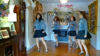 1234Swivel both heels to R, both toes to R, both heels to R, hold & clap