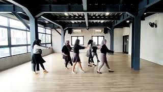 Option: During steps 1-6, sway arms up towards step/touch direction.